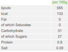 Ingredients: *peach 65%, *concentrated apple juice, *apple puree, gelling agents: citrus pectin, acidity corrector: citric acid. *organic